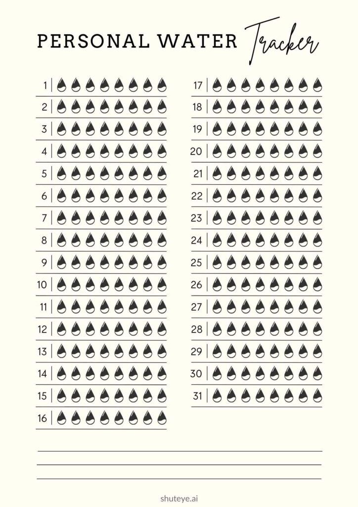 A water tracker is a good way to keep count of how many glasses of water youâve had each day. It can also also help encourage you to drink more, establish the good habit of keeping hydrated and make you feel generally better!